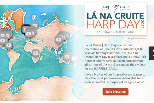 Once again, we were delighted to welcome our global harp ambassadors to our Lá na Cruite Harpers’ Call with tunes coming in from Australia to Japan to the US, and farther afield. These are now live on our interactive map.