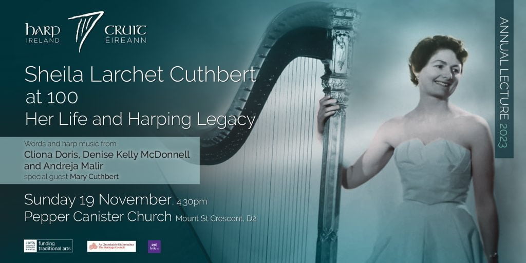 Cruit Éireann | Harp Ireland’s 2023 annual lecture marks Sheila’s remarkable achievement in her 100th year. With harp music and words, Denise Kelly McDonnell, Cliona Doris and Andreja Malir discuss her pivotal role and share personal insights into the life and harping legacy of a crusader who transformed the harp in Ireland, and who exerted a profound influence on Irish musical life throughout the twentieth century.