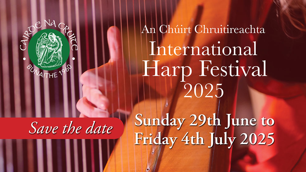 Cairde na Cruite’s acclaimed international harp festival, An Chúirt Chruitireachta will return to An Grianán, Co. Louth in 2025 from Sunday 29th June – Friday 4th July 2025.