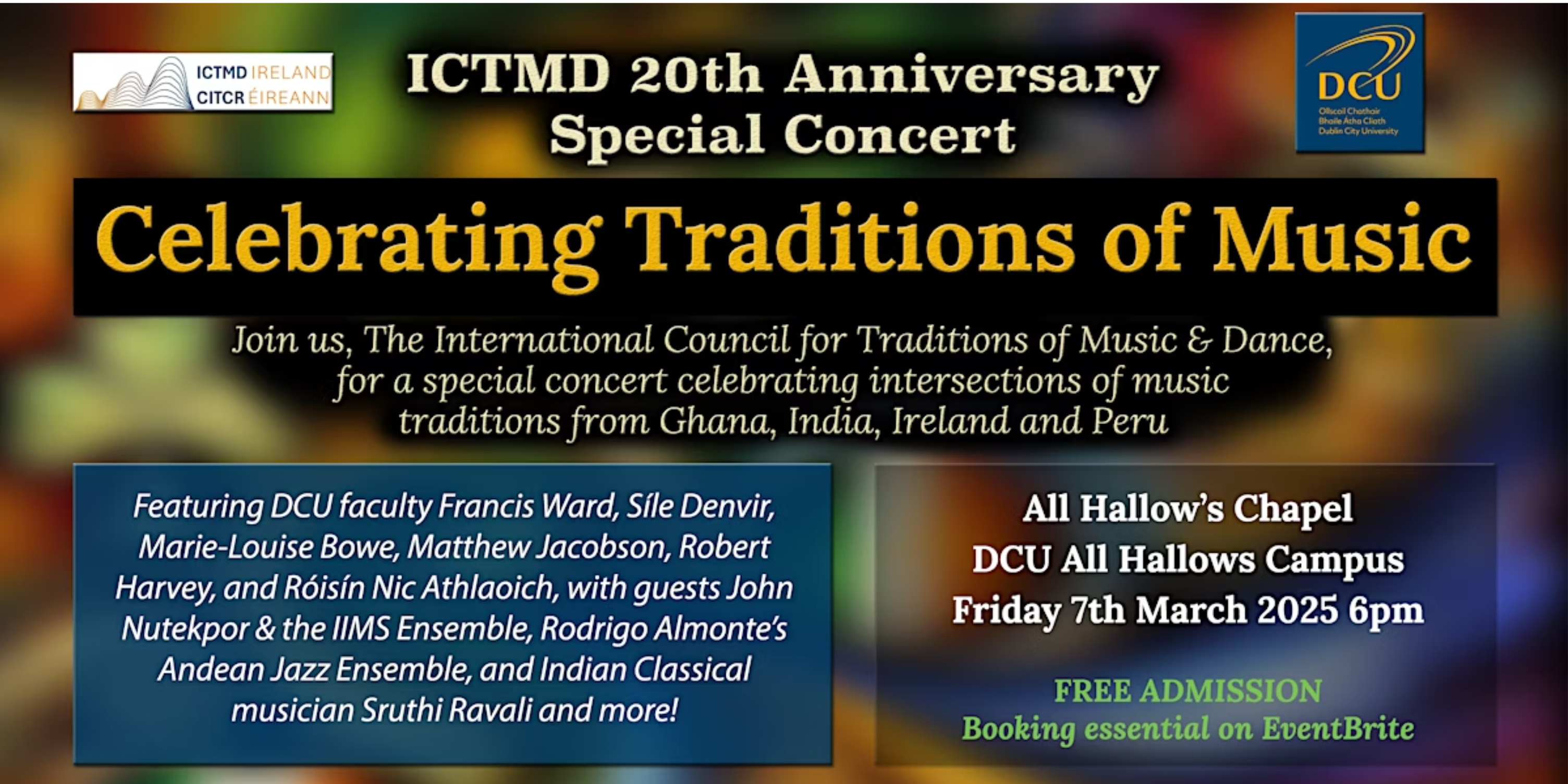 ![]() ICTMD Ireland 20th Anniversary Concert: Celebrating Traditions of Music Join us for a special concert celebrating intersections of music traditions from Ireland, Ghana, Peru and... |
