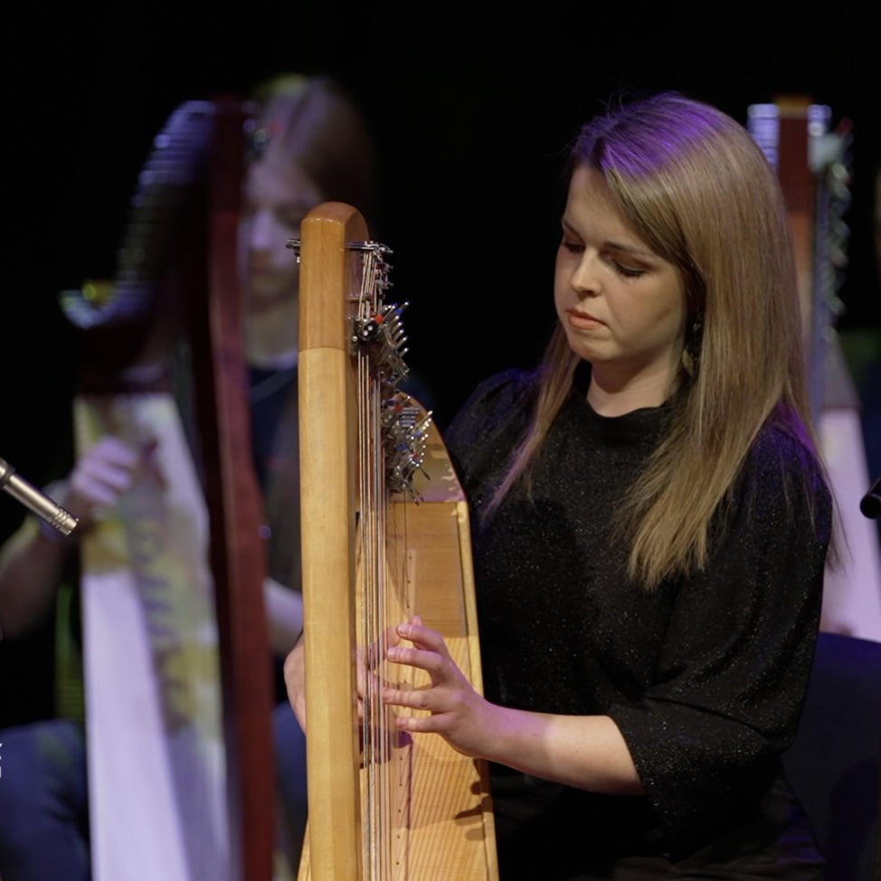 Aisling Lyons and Dale McKay performed at Glór Theatre, Ennis for Harp Day 2022 with harpers from Music Generation Laois & Music Generation Clare.