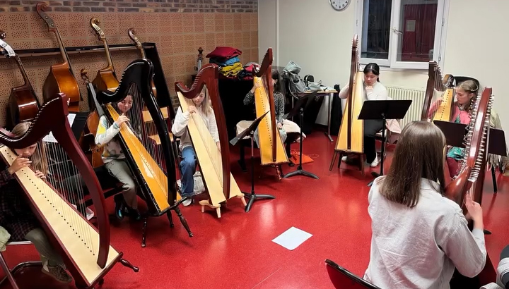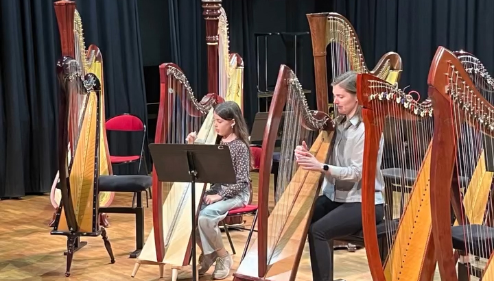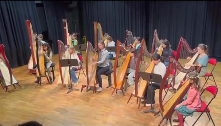 Harp Day workshops with Eilís Lavelle. A fabulous day with young harpers, and it was the first time for most of them to learn a tune by ear. Culminating in a well-attended Evening performance in their auditorium at the conservatory.