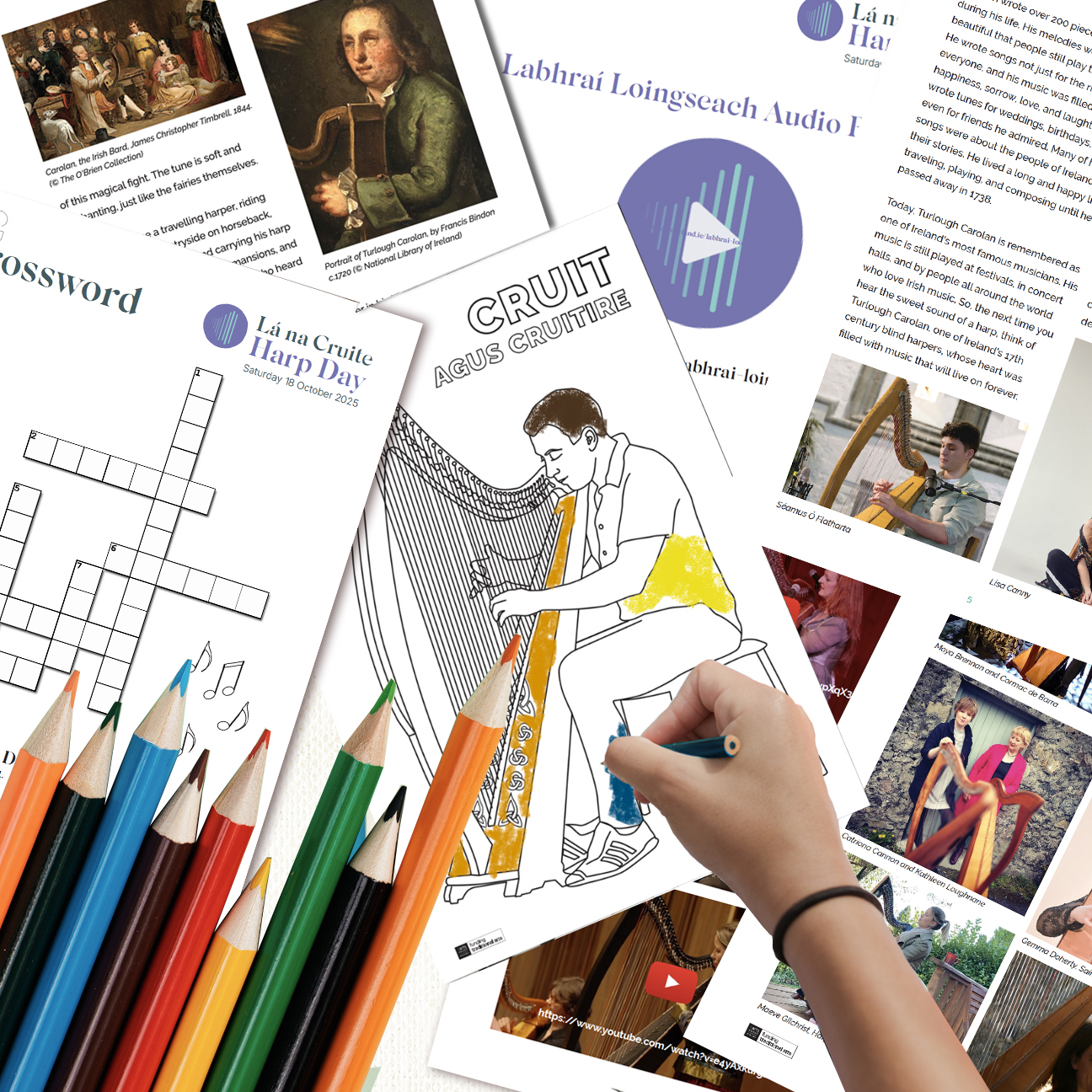 Chun Lá na Cruite | Harp Day a cheiliúradh, tá pacáiste acmhainní cruthaithe againn do scoileanna chun cabhrú le daltaí foghlaim faoina n-uirlis náisiúnta. Cuimsíonn an pacáiste acmhainní stair ghearr na cruite agus bileog oibre ghaolmhar, crosfhocal, tráth na gceist, leathanach dathúcháin agus taifead den scéal Labhraí Loingseach. Tá siad ar fad ar fáil le híoslódáil i nGaeilge agus i mBéarla.
