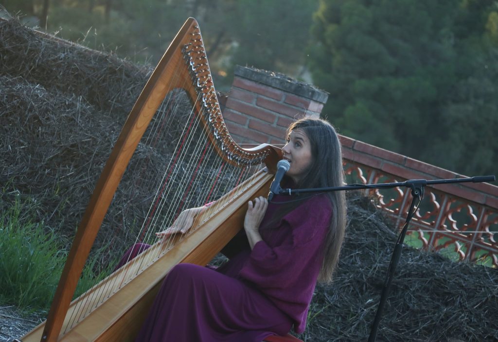 In the heart of nature at Lligams Orgànics farm in l’Espluga de Francolí as part of the Cicle d’Arts en Viu Simbiosi series. Anna Amigó shared her beautiful harp music and voice with an enthusiastic audience. Guests enjoyed a guided visit to the agroecological farm, connecting with the land and learning about sustainable practices. The evening was capped off with a delightful tasting of organic products, making it a truly immersive experience in music, nature, and community.