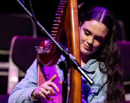 Úna May Walsh aged 17 from Barntown Co. Wexford. A member of Craobh Loch Garman Comhaltas in Wexford Town – the proud host branch of Fleadh Cheoil na hÈireann 2024 & 2025. Úna is a harp student of teacher Shelly O’Grady. Úna has 3 All-Ireland medals, 2 Leinster Fleadh Cheoil 3rd place medals and was recently awarded the Micheál Ó hEidhin medal for distinction in her Comhaltas Grade 8 SCT Grade exams and she will sit her Performance Diploma soon. Úna is the Youth Officer for her local branch and is also the Irish Youth Ambassador for Hidden Hearing.