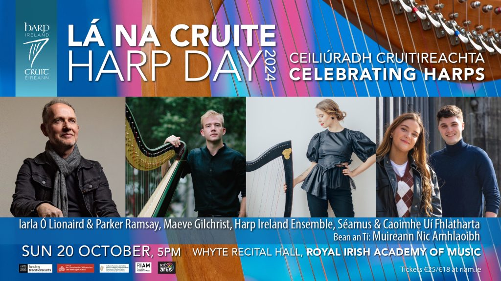 Cruit Éireann | Harp Ireland celebrates Irish harping at a very special gala concert in the Royal Irish Academy of Music’s Whyte Recital Hall at 5pm on Sunday 20th October. This grand finale in a feast of harping worldwide marking Lá na Cruite | Harp Day 2024 brings together some of our finest harpers and singers from both Ireland and abroad.