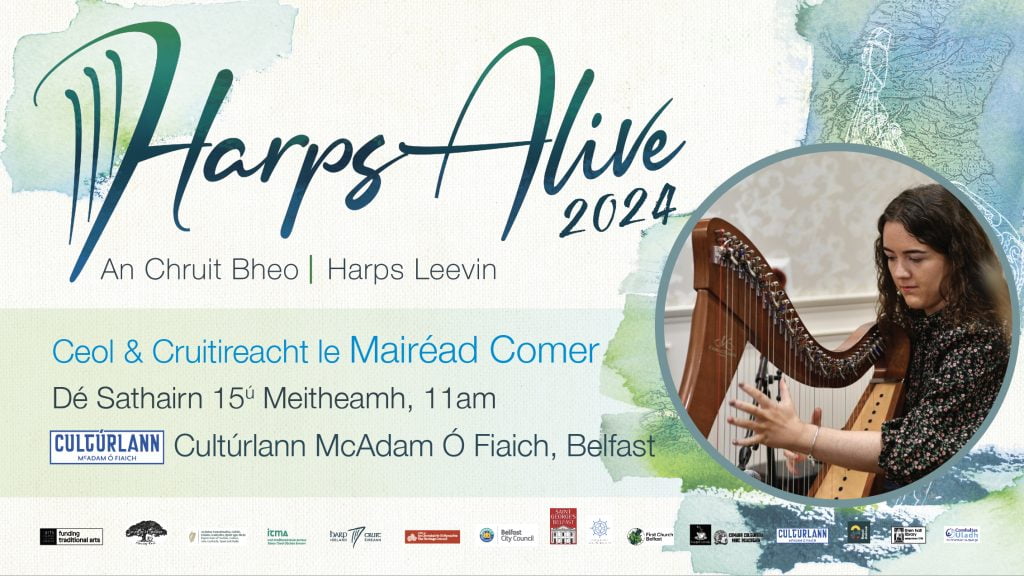 Ceardlann spraoi do theaghlaigh agus do pháistí: Bígí le Mairéad Comer agus í ar aistear draíochtúil. Éist le ceol na cruite in éineacht le scéalta móra na hÉireann - smaoinigh ar na sióga, taoisigh agus finscéalta fadó, fadó…