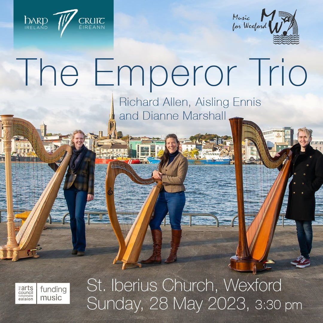 Performances by The Emperor Trio – Aisling Ennis Harpist, Richard Allen and Dianne Marshall – and the Wexford Harp Ensemble- Cruitirí Loch Garman