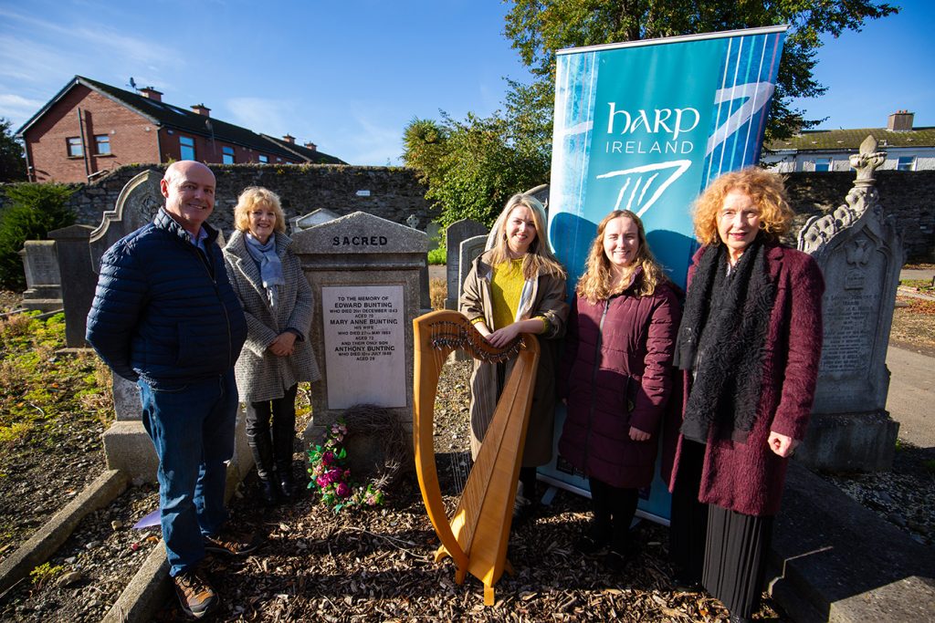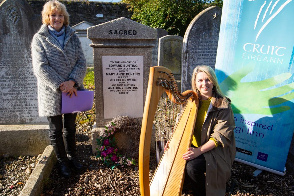 Edward Bunting’s grave, which was restored as part of the 2022 festival became a performance space, where Aosdána poet Moya Cannon and harper Aisling Lyons revisited the ancient bardic tradition of poet and harper. This duo performed a newly commissioned poem reflecting Bunting’s key role as a major collector, the transcriber of the music played by the harpers at the 1792 harpers’ gathering, and as a conserver of the harping tradition in Ireland .